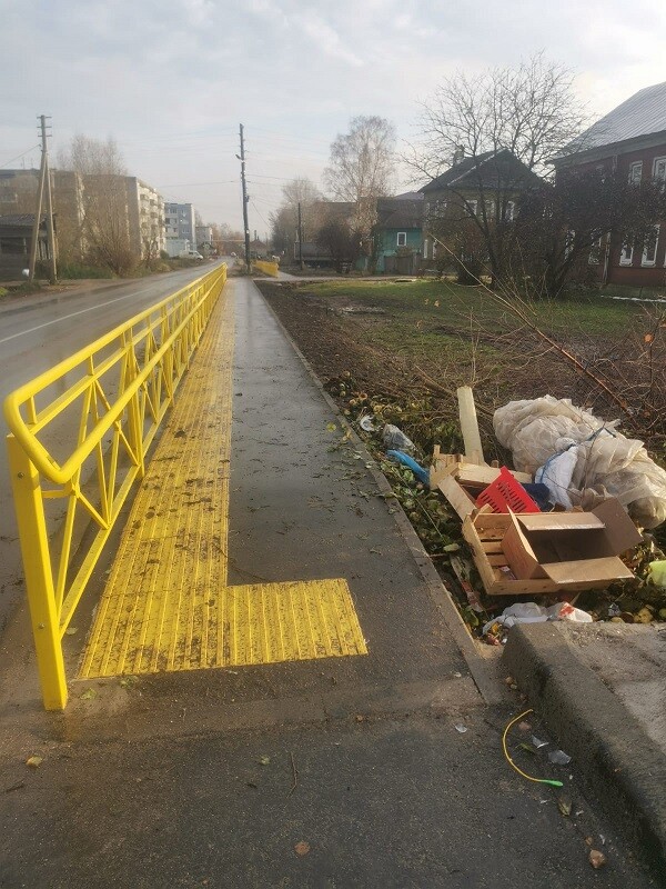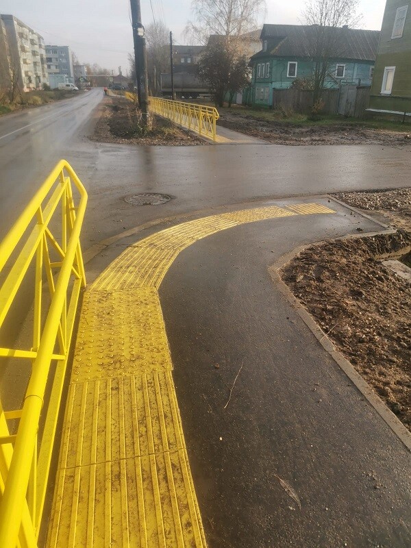 Эти плиты в теории (на деле – нет) должны указывать направление, по которому люди с ограниченными возможностями из общества слепых и расположенного неподалеку производства, на котором работают инвалиды по зрению, могли ходить на рынок.