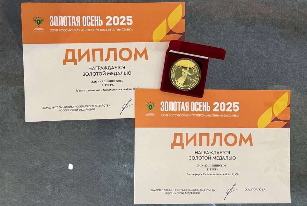 По итогам выставки масло и биокефир ЗАО «Калининское» получили золотые медали в номинации «За производство высококачественной пищевой продукции».