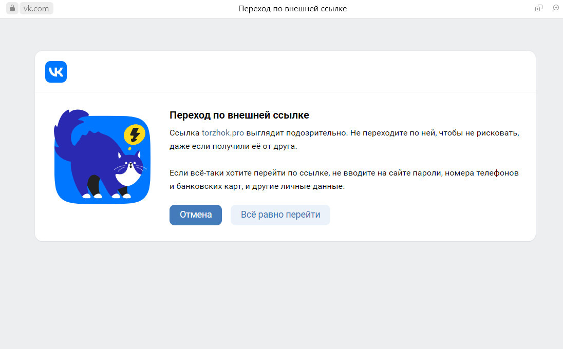 И, второе, VK постоянно спрашивает при переходе на внешний ресурс. Это политика не только социальной сети, но и требование безопасности по закону.