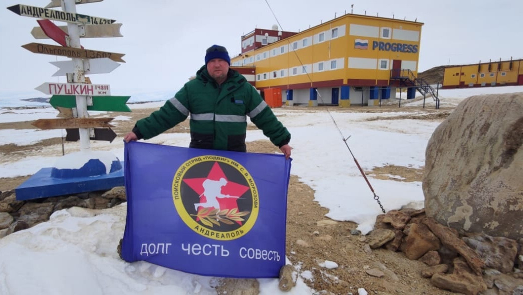Конечной точкой путешествия Сергея стала исследовательская станция «Прогресс» в Антарктиде. Флаг должен вернуться в Андреаполь в следующем году к 35-летию поискового отряда «Подвиг».