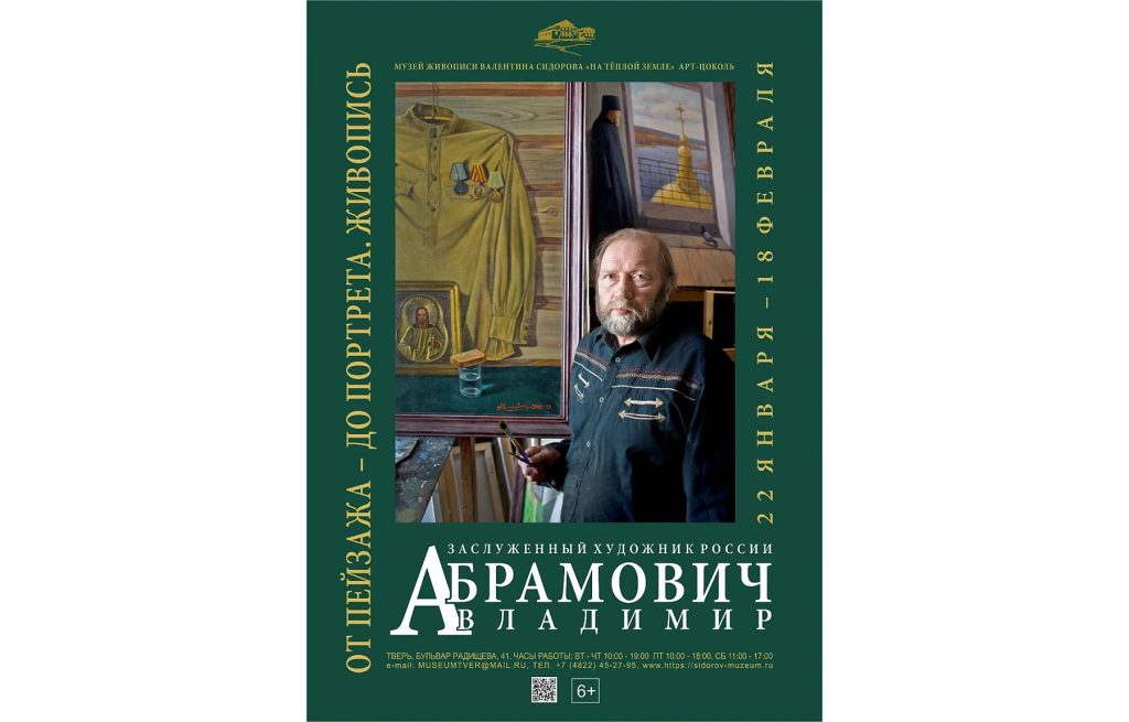 В Музее живописи Валентина Сидорова «На теплой земле» начала работу выставка заслуженного художника России, уроженца Нелидово Владимира Абрамовича «От пейзажа — до портрета» (6+). Он много раз представлял Тверскую область и Россию на международных выставках, на которых его работами восхищались как отражением русской души, русского миропонимания. Владимир Павлович выставлялся в Болгарии, Италии, Китае, Польше. Его работы хранятся в государственных музеях и в частных собраниях за рубежом. Посмотреть работы мастера можно до 18 февраля.