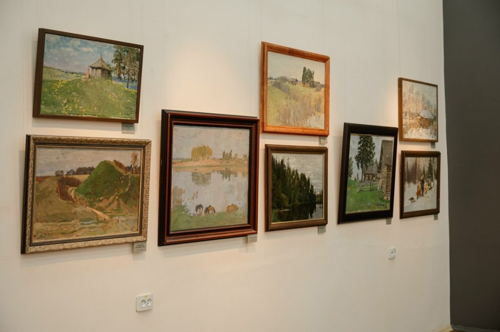 Посетители выставки могут увидеть картины, посвященные городам Золотого кольца – Ярославлю, Сергиеву Посаду, Суздалю, – а также Пскову, Великому Новгороду, Москве и Санкт-Петербургу.
