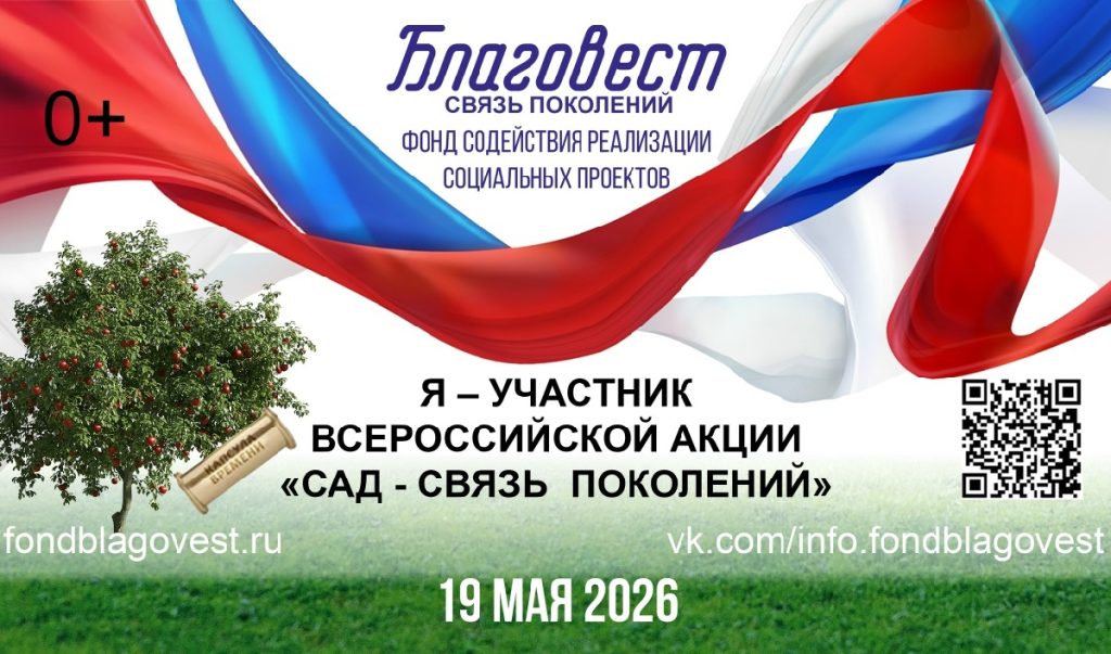 19 мая в России пройдет акция «Сад – Связь поколений», приуроченная к празднованию 81-й годовщины Победы в Великой Отечественной войне. Ее организует Фонд содействия реализации социальных проектов «Благовест».